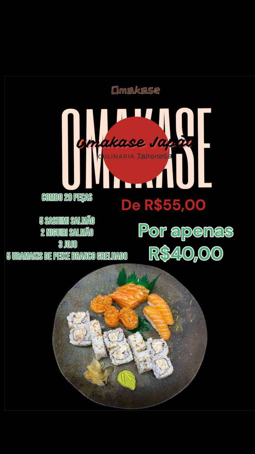 Combinados5 sashimi de salmão, 2 niguiri salmão , 3 jojo e 10 uramakis de peixe branco grelhado